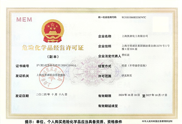 上海凱賽化工有限公司是由國家相關部門批準成立的一家化工企業。公司與國內科研機構、高等院校建立合作關系,產品性能得到業內同行的贊譽,產品質量受到各行業用戶的好評。公司成立以來本著“誠信第一、合作雙贏”的宗旨,始終把客戶的需求放在首位,堅持以市場為導向,不懈科技創新,在業界形成龐大的銷售市場網絡,與國內多家企業建立了良好的供求合作關系。面對競爭激烈的市場,公司始終熱情接待每一位有誠意的客戶。“為您提供優質的產品和滿意的服務”是我們一貫堅持的理念,公司全體員工期待與您的攜手合作。